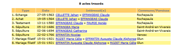 Cependant l’acte qui m’intéresse est son testament passé avec une certaine Agnès FAURIE, le 13 novembre 1580 à Rochepaule, devant Me Pons PINOT.