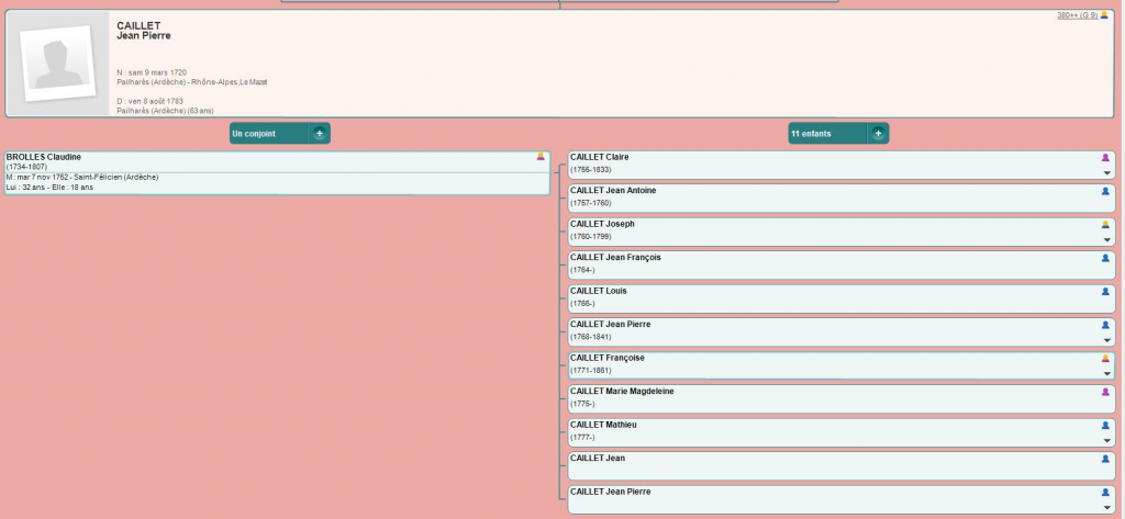 La branche de Joseph CAILLET a donné la lignée de ma grand-mère paternelle MARON BESSET (branche maternelle de ma grand-mère paternelle).