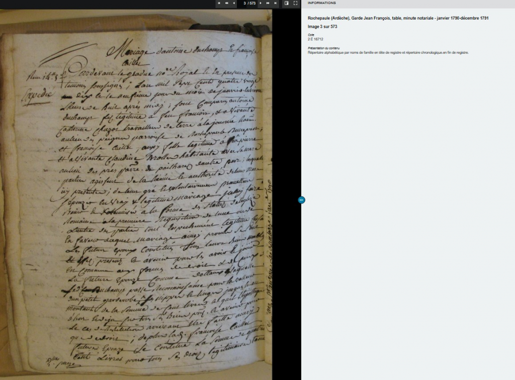 Avant leur mariage, ils avaient passé un contrat de mariage devant Me Jean MALLEVAL, le 18 octobre 1752 à Pailharès (étude 2E 5964).