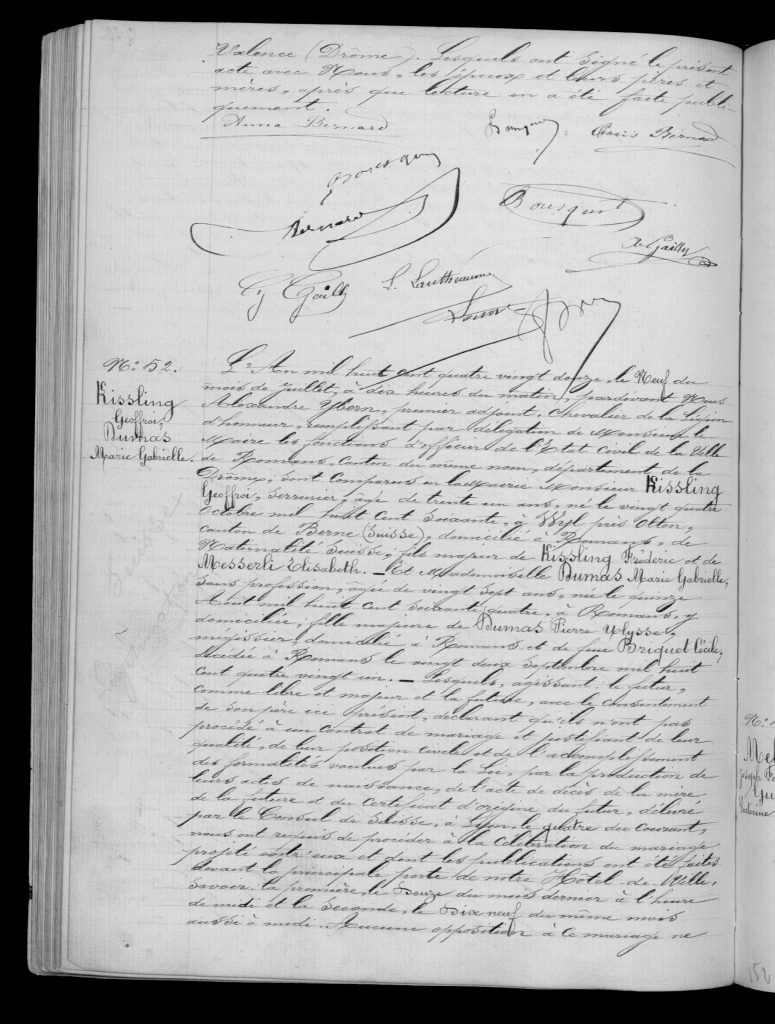 Geoffroi KISSLING a épousé à Romans-sur-Isère (Drôme) a épousé Marie Gabrielle DUMAS, le 9 juillet 1892.