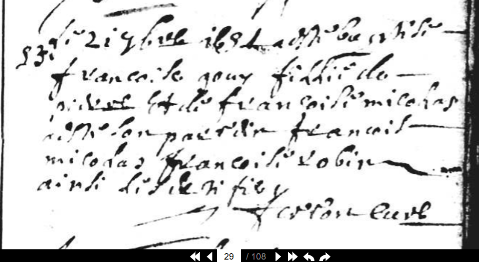 Son parrain : François NICOLAS, sa marraine Françoise ROBIN